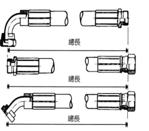 软管总成长度:软管总成长度是从一个软管接头端面到另一个软管接头端面的水平距离。这个长度允许±1%的制造误差。如果长度过长,会影响外观并增加成本;如果长度过短,软管在受压伸展或压缩时没有足够的伸缩余地,可能会导致软管被破坏。