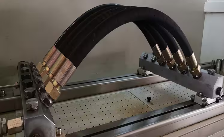 方法:将软管总成弯成一定角度(如90°或180°),安装到实验装置上。给软管总成通入相应的试验介质,并施加脉冲压力。测试压力为软管总成最大工作压力的一定比例(如100%/125%/133%),测试频率在一定范围内选择。在完成相应标准规定的脉冲次数后进行评估。