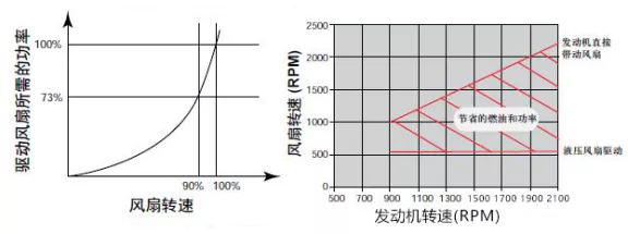 液压风扇驱动可以为发动机在任意转速下提供最大的风扇转速,降低了功率消耗。