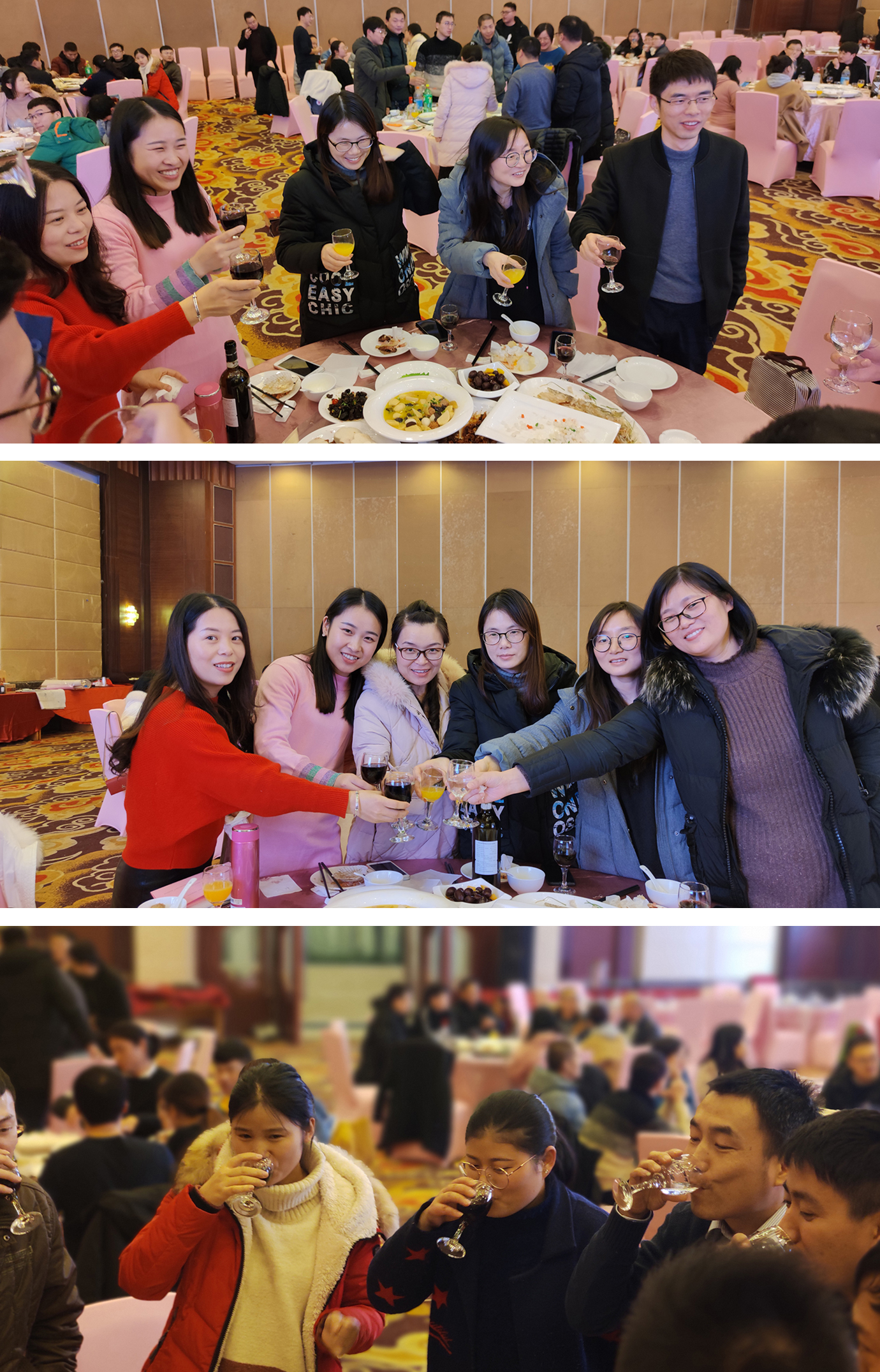 举起酒杯,相互感谢身边的家人们,这一年你们辛苦了,让我们共同举杯,迎接更加辉煌的2020,共同带着对2020年的新期待,干了这杯酒!
