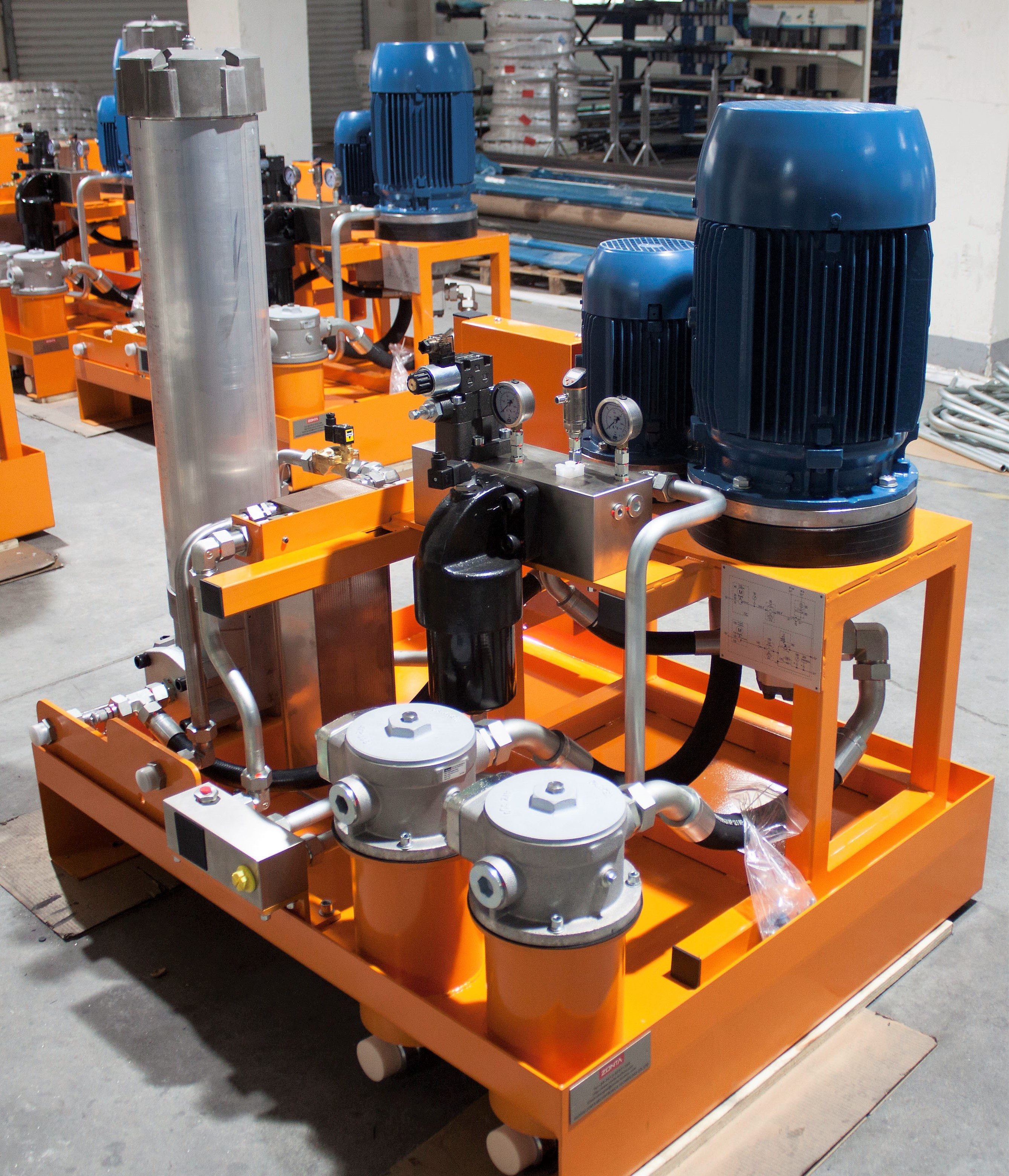 液压站是由液压泵、驱动用电动机、油箱、方向阀、节流阀、溢流阀等构成的液压源装置或包括控制阀在内的液压装置。按驱动装置要求的流向、压力和流量供油,适用于驱动装置与液压站分离的各种机械上,将液压站与驱动中泰可以为您提供多种液压解决方案与系统:装置(油缸或马达)用油管相连,液压系统即可实现各种规定动作。