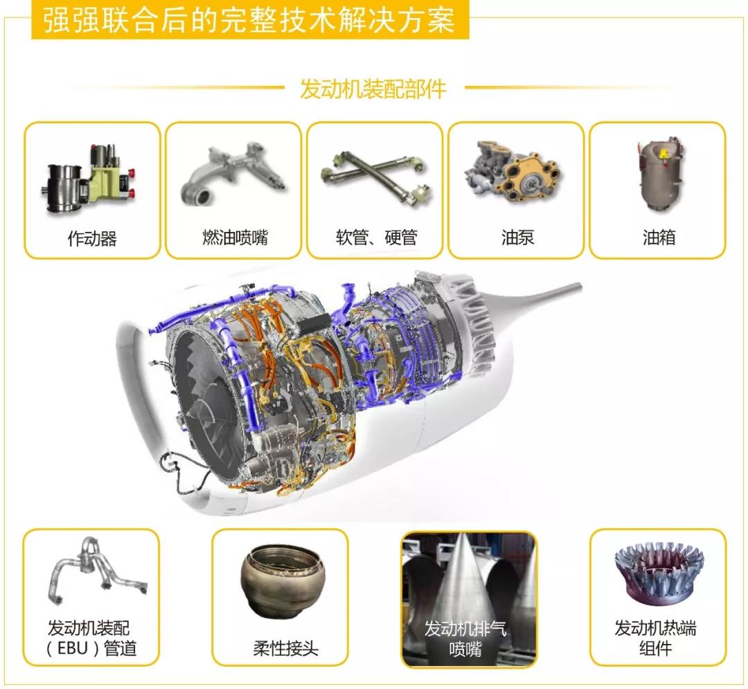 Exotic Metals先进的金属管路、发动机热端组件、发动机装配(EBU)产品将与派克宇航集团现有的发动机、机体产品融合,使宇航集团的技术覆盖EBU流体管理、飞机气动、滑油、液压、燃油、油箱惰化、飞行控制等各类机载系统和部件。
