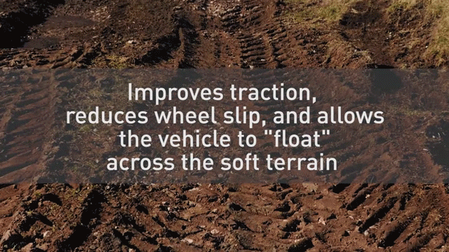 当车辆降低车速行驶时,轮胎制造商允许其降低胎压。与通常认知不同,车辆在较低的胎压下行驶能够延长轮胎使用寿命,因为轮胎扎伤和胎面缺损的风险降低了。由于轮胎在松软泥地或沙地上浮于表面而不留下较深的车辙,因此CTIS系统还能优化轮胎滚阻,降低油耗。