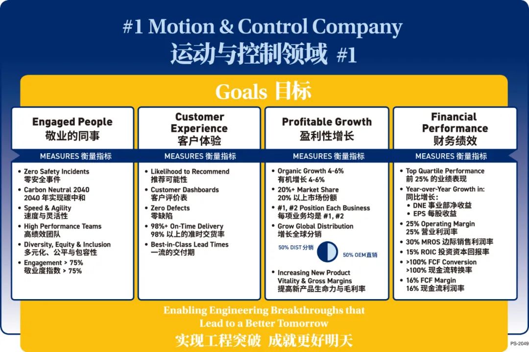 派克以“制胜战略”各项目标为核心,寻找在文化上和战略上高度一致的合作对象。“制胜战略”是派克全球业务的价值系统,代表着全球员工统一的战略愿景。“制胜战略”以派克的文化、价值观和宗旨为锚点,定义了各项运营重点和考察指标,用于推动团队成员的敬业度、提升客户体验、促进盈利性增长,优化财务绩效。