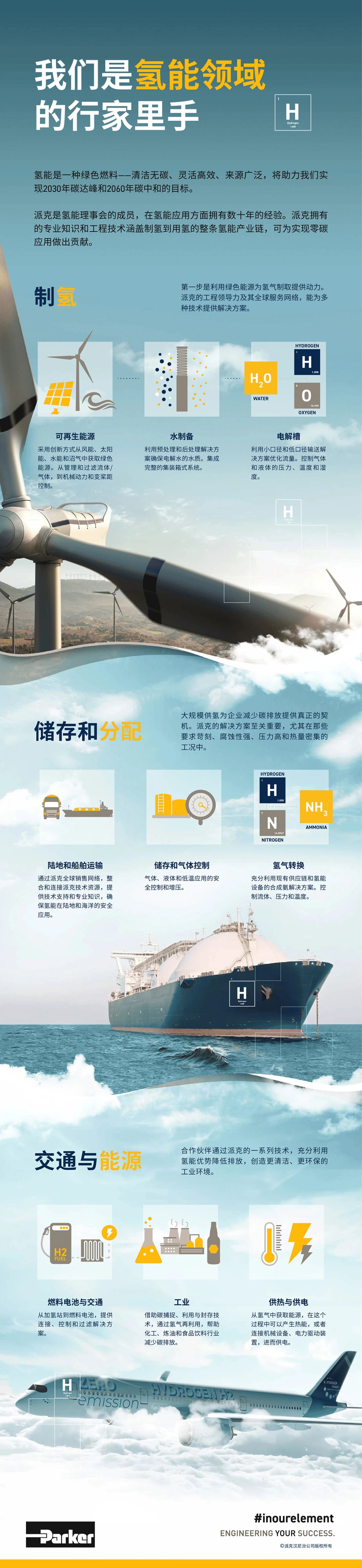 氢能是一种绿色燃料--清洁无碳、灵活高效、来源广泛,将助力我们实现2030年碳达峰和2060年碳中和的目标。派克是氢能理事会的成员,在氢能应用方面拥有数十年的经验。派克拥有的专业知识和工程技术涵盖制氢到用氢的整条氢能产业链,可为实现零碳应用做出贡献。