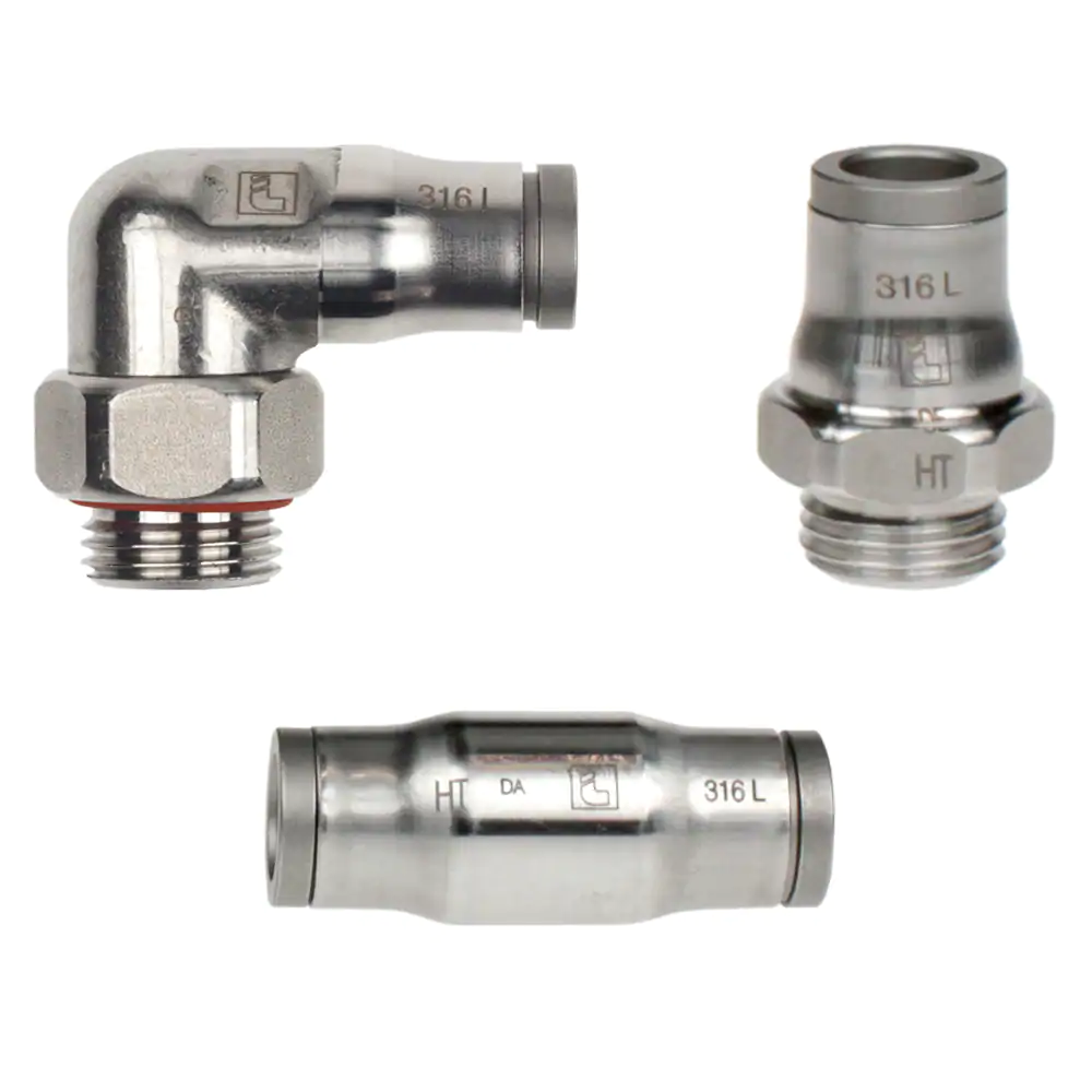 派克乐可利开发了两种系列的不锈钢快插式接头(LF3800和LF3900全不锈钢316L材质系列),可用于传输严苛环境中的腐蚀性流体。这些产品系列提供了两种水平的耐蚀性能,具有符合卫生要求的外形设计。