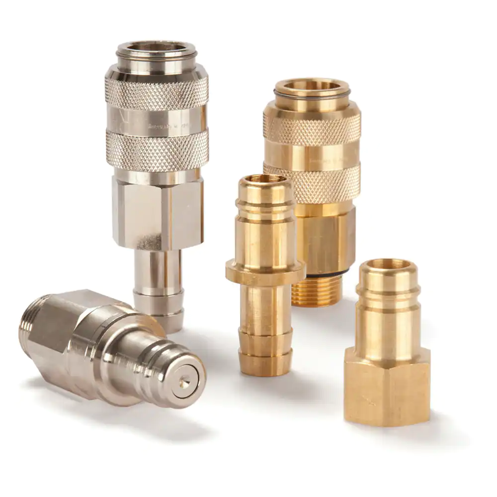 该系列快换接头公称通径是15mm,主要用于气动以及食品输送的应用,耐压可达35bar。该系列快换结构设计符合派克内部的设计。接头材料:黄铜。