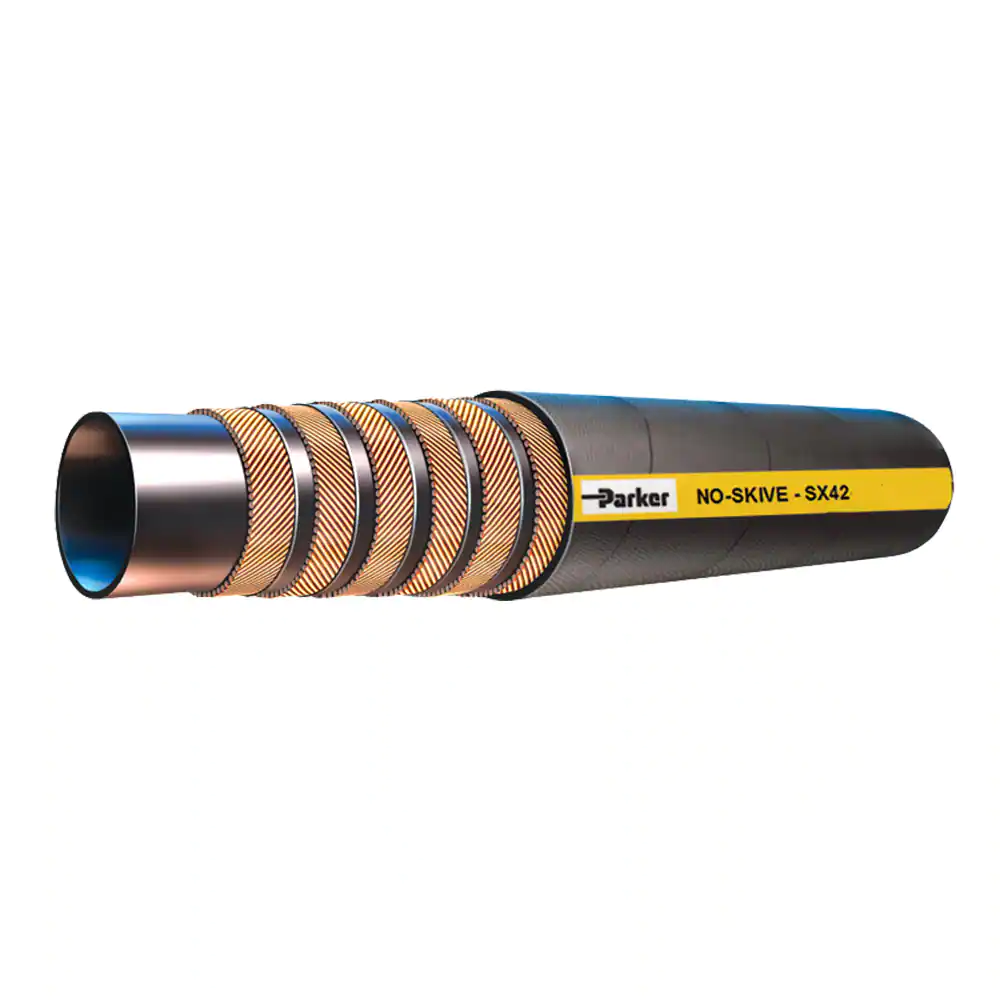 派克不剥胶螺旋液压管 SX42 用于压力不超过42.0 MPa通用高压液压的应用。软管适用接头是 Parkrimp 不剥胶73和77系列。
